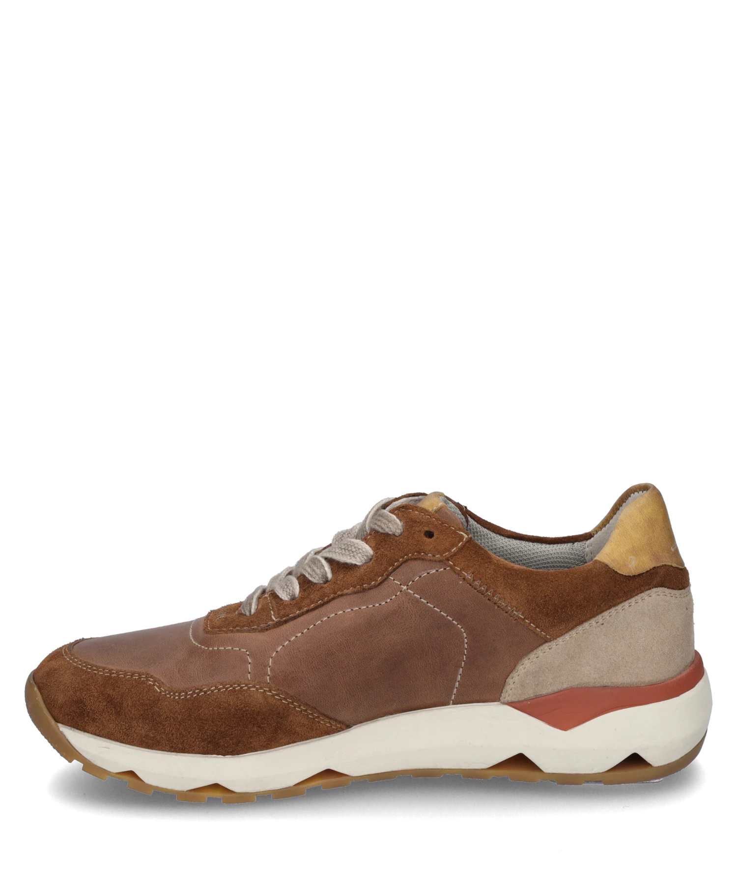 Im Herbst und Winter bist Du gut beraten mit unserem braunen Sneaker – Jonah 05. Dieser Sneaker wird für Dich aus einer geschmeidigen Leder-Kombination gefertigt. Das Modell Jonah 05 gewährt einen komfortablen Einstieg durch eine modische Schnürung. Ausgestattet ist dieser Sneaker zudem mit einem herausnehmbaren Fußbett aus Textil. Die für Sneaker typische Fertigungsart Strobel macht den Schuh besonders strapazierfähig. Wenn Dir die Schuhweite F zu schmal und die Weite H zu breit sind, ist dieser Schuh für Dich perfekt. Mit Jonah 05 genießt Du mehr Freiheit in Deiner Freizeit.